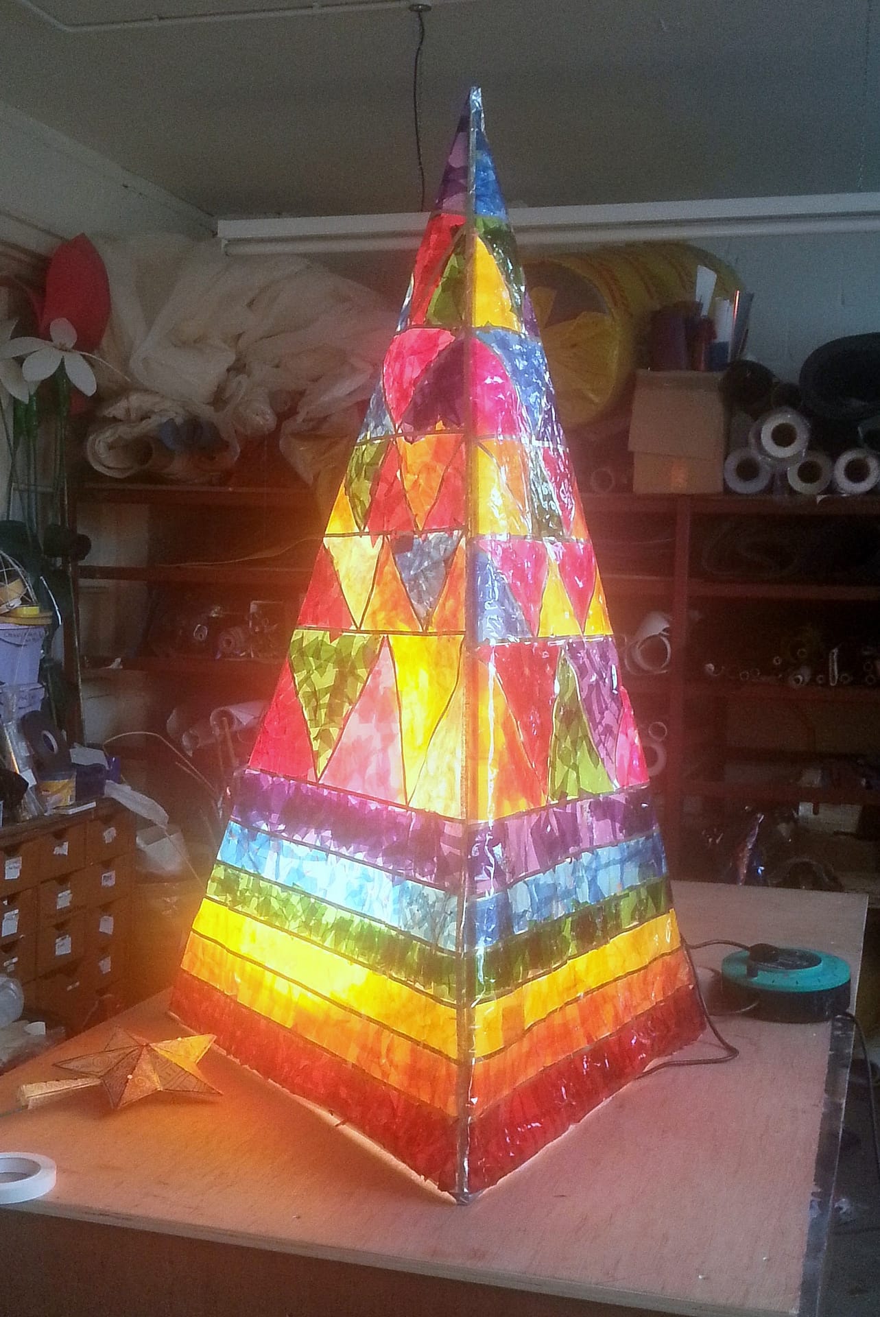 We love to make things; big or small, lightweight or heavy duty, temporary or permanent. This gallery shows some of our favourite 3D work, including geodesic domes, carnival puppets and faux stained glass sculptures.