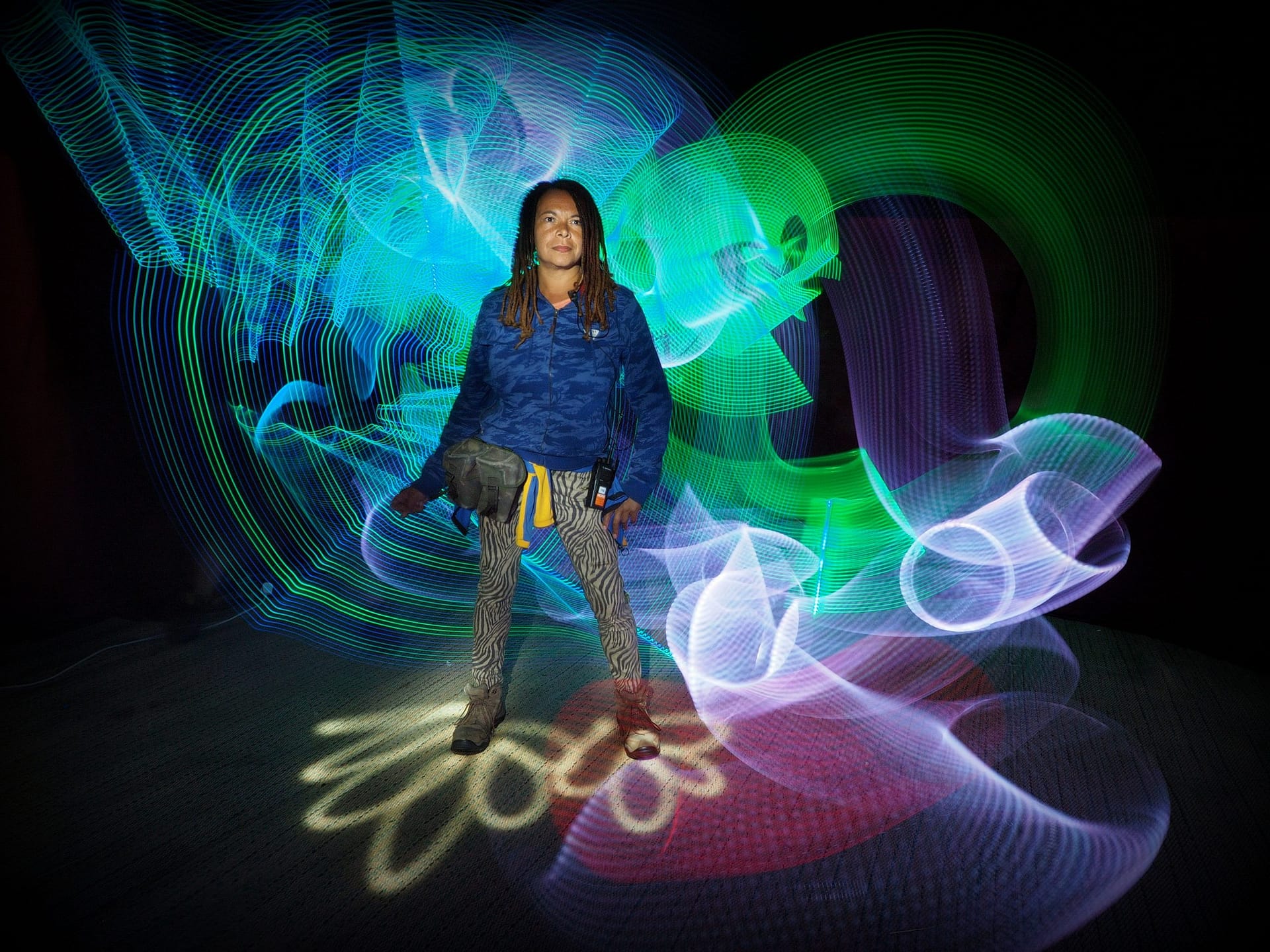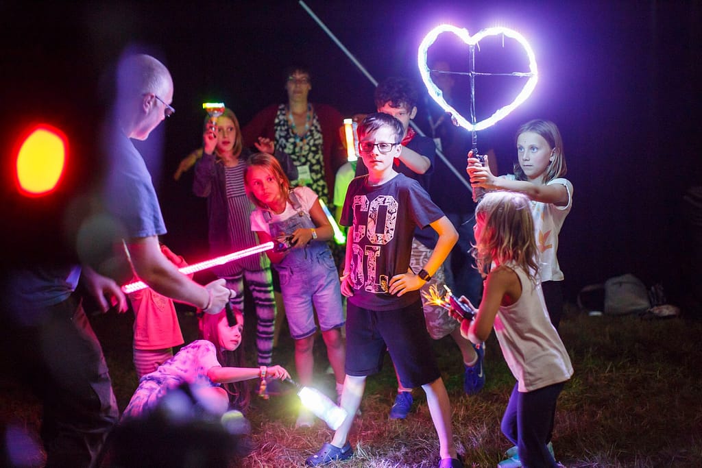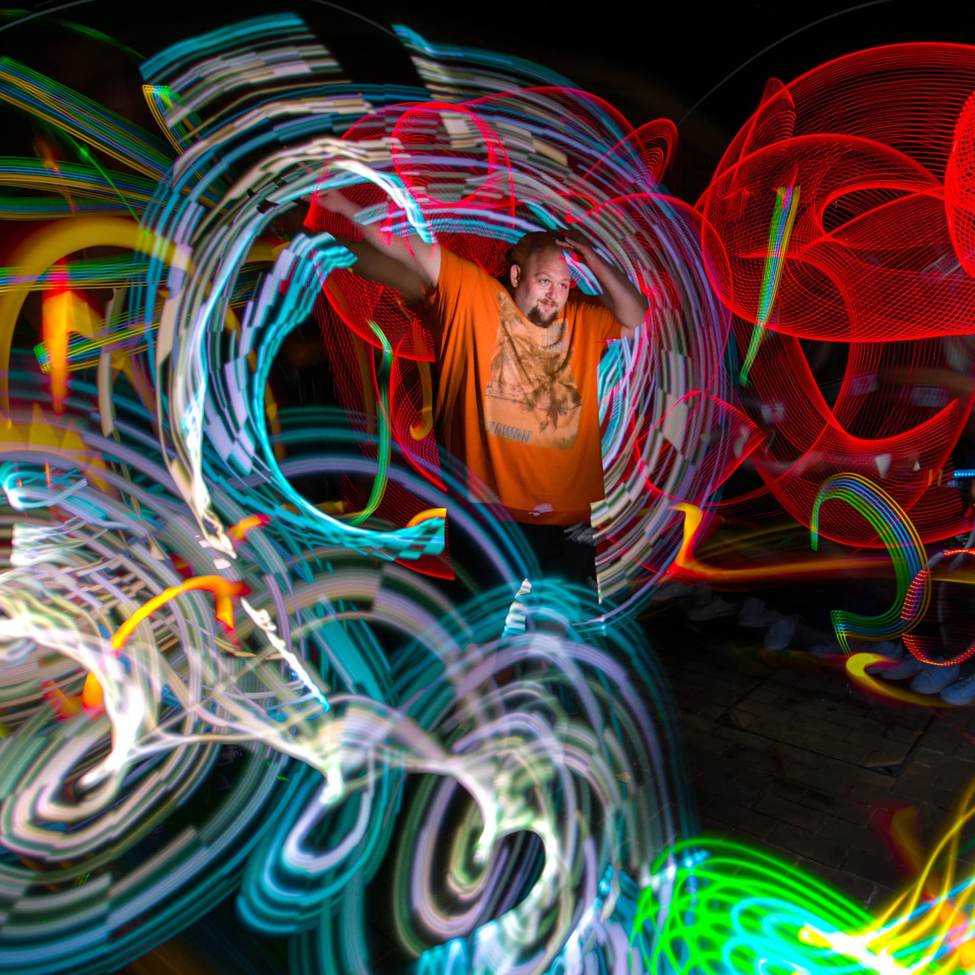 | Wide-eyed amazement is the most common response to participating in light painting workshop! We use a form of long exposure photography similar to making trails with sparklers on Bonfire Night. Participants get to play with an array of homemade light ‘brushes’, torches, lightsabres and wands to create dazzling portraits, abstract masterpieces and amazing animations in a matter of seconds; there are literally infinite possibilities for creativity in this magical process. It is a perfect activity for schools, parties, conferences, festivals, trade shows, weddings and more and works indoors or outside. It works for all ages and abilities and requires no artistic skill – although the artists amongst you will have great fun adapting to this new technique. A single photo can take between 15-60 seconds to create; the process is broadcast to nearby screens in real-time and the final images are instantly viewable at the end of the shot. The process is quite unique in that it requires no booth or black out room and can even work in daytime in a shaded environment. We can set up in a dedicated space or quickly set up in various places around a venue. We also have a 5m x 5m inflatable dome for weather protection or to help dim particularly bright environments. We have run light painting sessions many thousands of participants across the UK and at festivals and events in Paris, Munich, Frankfurt, Malta, Spain and the UAE. |